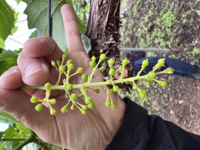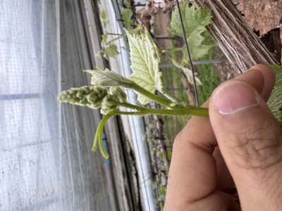 2026年も始まってもう4月・・・早い!!冬の作業、土づくりから始まり枝の剪定、木に皮剥ぎ、草刈り等々いろいろな作業を行ってきました。そのかいもあってシャインマスカットも無事、発芽からの今年のぶどうが。そこから作業に追われる日々・・しっかり7月の収穫に向けてぶどうに負けないように頑張っていきます!!これからもInstagramなどで随時進捗を載せるのでお楽しみに。写真は①発芽したところ ②シャインマスカットの房 ③4月1日現在のハウス ④大きくなったシャインマスカットの房